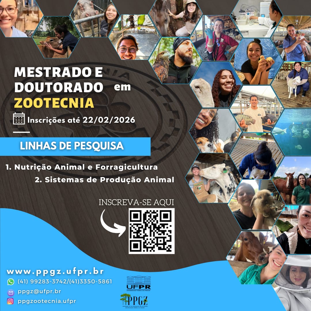 Mais informações e inscrições: www.prppg.ufpr.br/site/ppgz/pb/processo-mestrado-e-doutorado/
